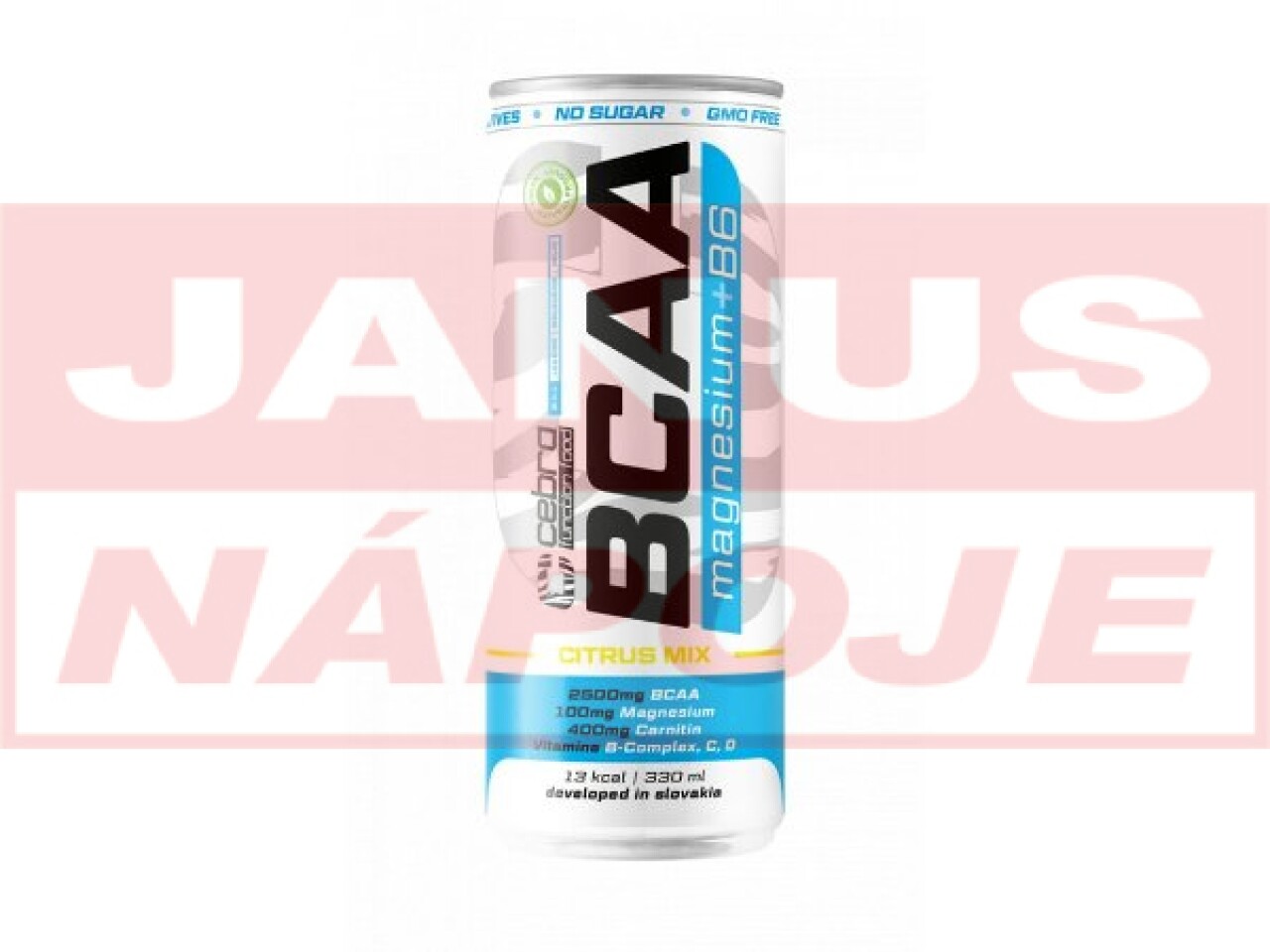 CEBRA vitamínový nápoj BCAA mg+B6 citrus mix 330ml. Sýtený nealkoholický nápoj s BCAA aminokyselinami, horčíkom, vitamínmi a s príchuťou citrusového ovocia. Obsahuje sladidlo. Pasterizované