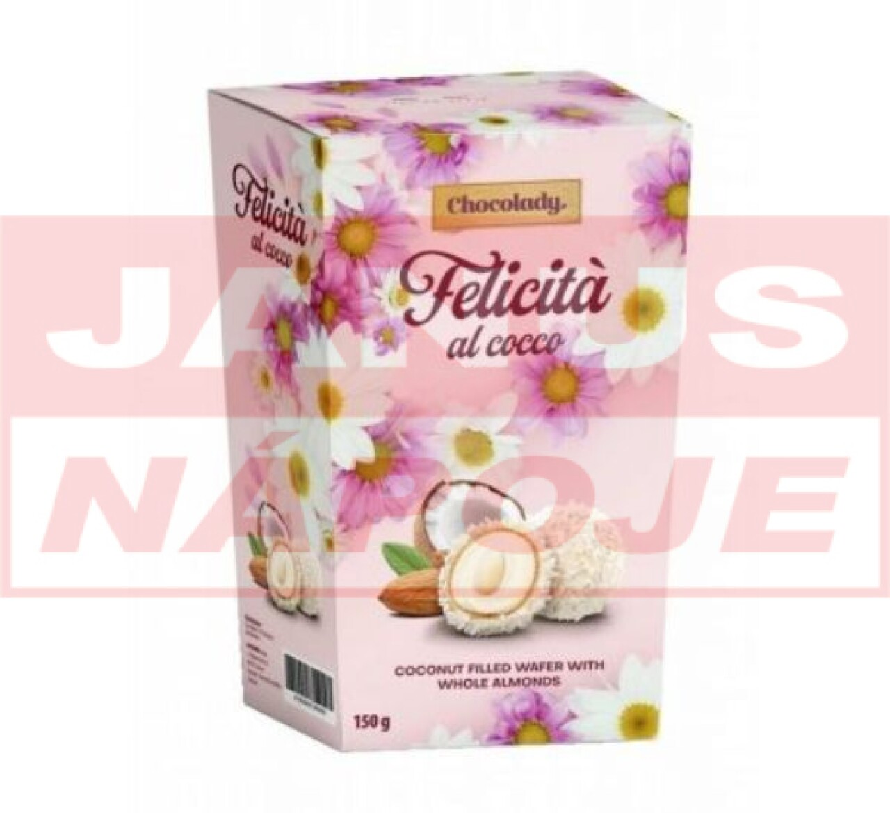 Zloženie sušený kokos (18%), rastlinné tuky (palmový, kokosový), cukor, mandle (7%), sušené odstredené mlieko, sušené plnotučné mlieko, sušená srvátka, pšeničná múka, tapiokový škrob, emulgátor (sójový lecitín), arómy, kypriaca látka (hydrogenuhličitan sodný), jedlá soľ. Môže obsahovať orechy a vajcia.