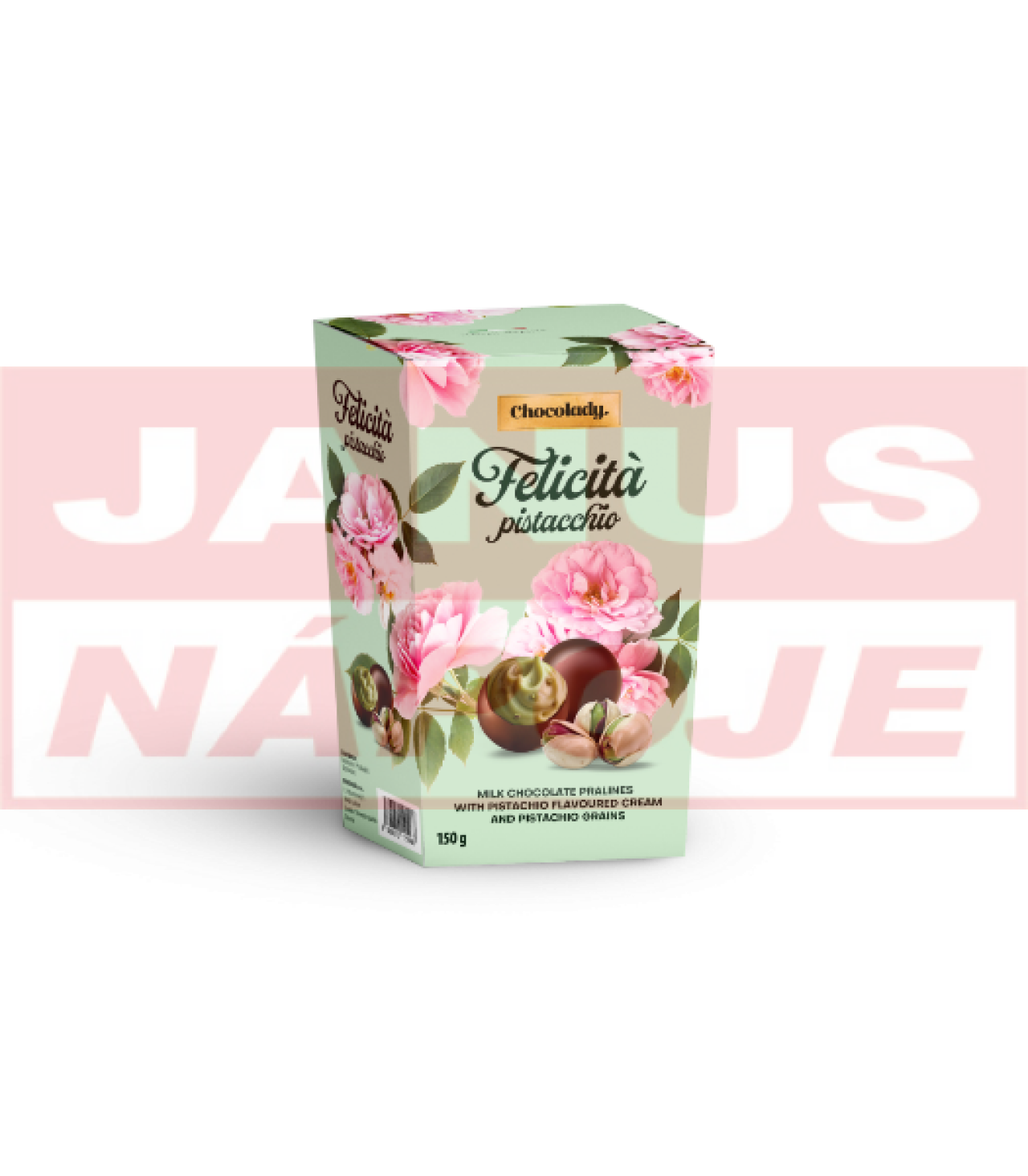 Zloženie | mliečna čokoláda 50% (cukor, kakaové maslo, plnotučné sušené mlieko, kakaová hmota, emulgátor (sójový lecitín), prírodná vanilková aróma), krémová plnka s pistáciovou príchuťou 44% (cukor, rastlinné tuky, (kokosový, slnečnicový) v rôznych pomeroch, odtučnené sušené mlieko, sušená srvátka, kakaové maslo, emulgátor (sójový lecitín), arómy (obsahujú pistácie)), kúsky pistácií 6% |