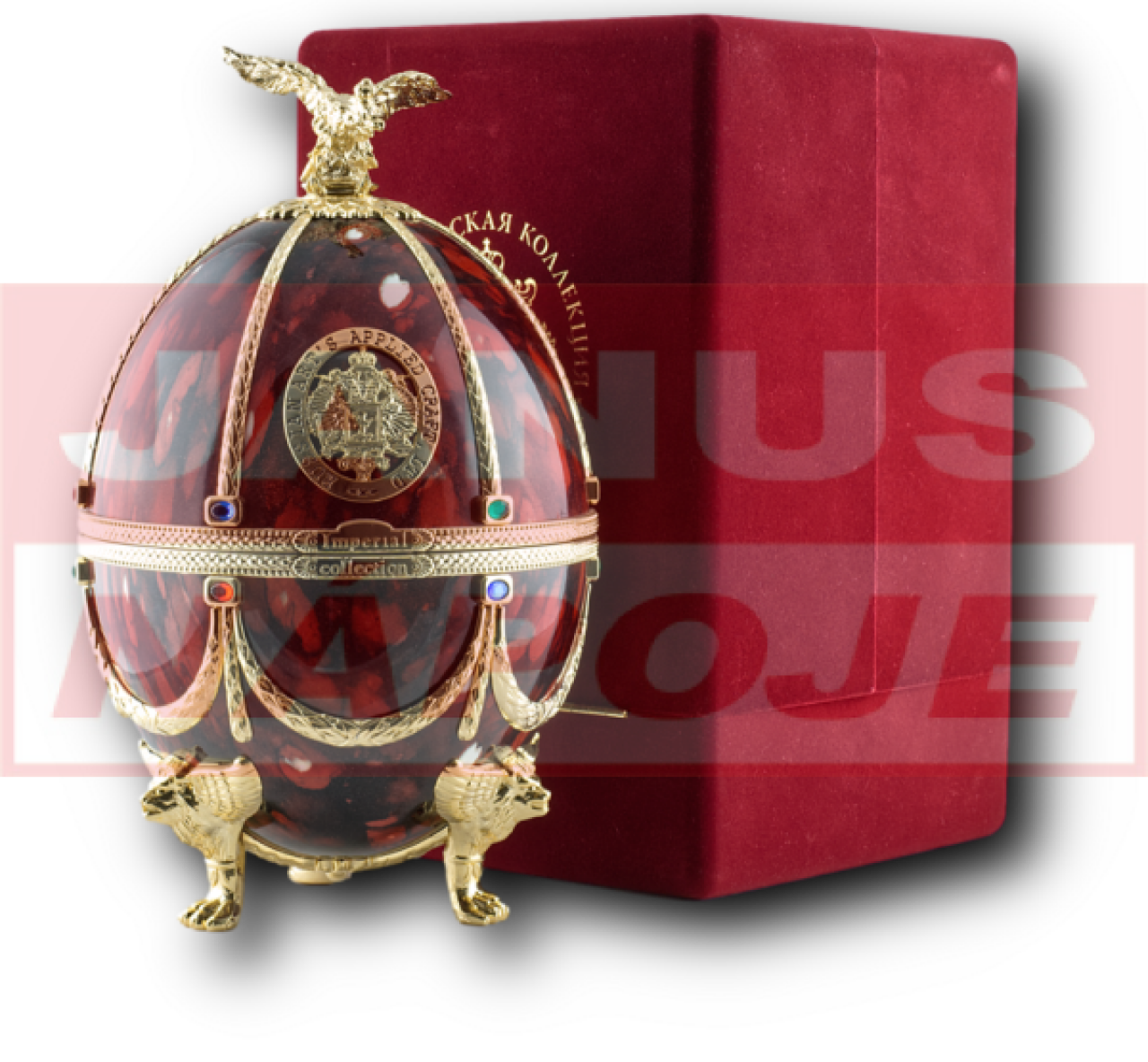 Odbornosť majstrov a luxus – unikátne štýlové obaly v podobe vajíčok inšpirované prácou Karla Fabergeho sú skutočnými majstrovskými dielami. Vodka Imperial Collection je jedinečný produkt, ktorého čistá, jemná a rafinovaná chuť je stvorená pre skutočných fajnšmekrov. Spojením historických tradícií výroby vodky a luxusného umenia v Imperial Collection vytvorili nielen dokonalú vodku, ale aj skutočné majstrovské dielo ručnej práce. Vajíčko je vyrobené z kovovej zliatiny pokryté smaltom rôznych farieb a zdobené pozlátenými prvkami a farebnými kamienkami. Dekantéry a poháre sú vyrobené z benátskeho skla s elegantným zlátením. Vyrábajú sa v starej talianskej továrni založenej v XII. storočí, kde sa tajomstvá výroby slávneho benátskeho skla prenášajú z jednej generácie na druhú. Dekantér je zdobený čistým zlatom a má pozlátený uzáver s červeným kamienkom Swarovski navrchu. Kompozíciu dopĺňa elegantný zlatý orol, ktorého navrhol jeden z najznámejších florentských majstrov, ktorý vo Vatikáne pôsobí vyše tridsať rokov.
