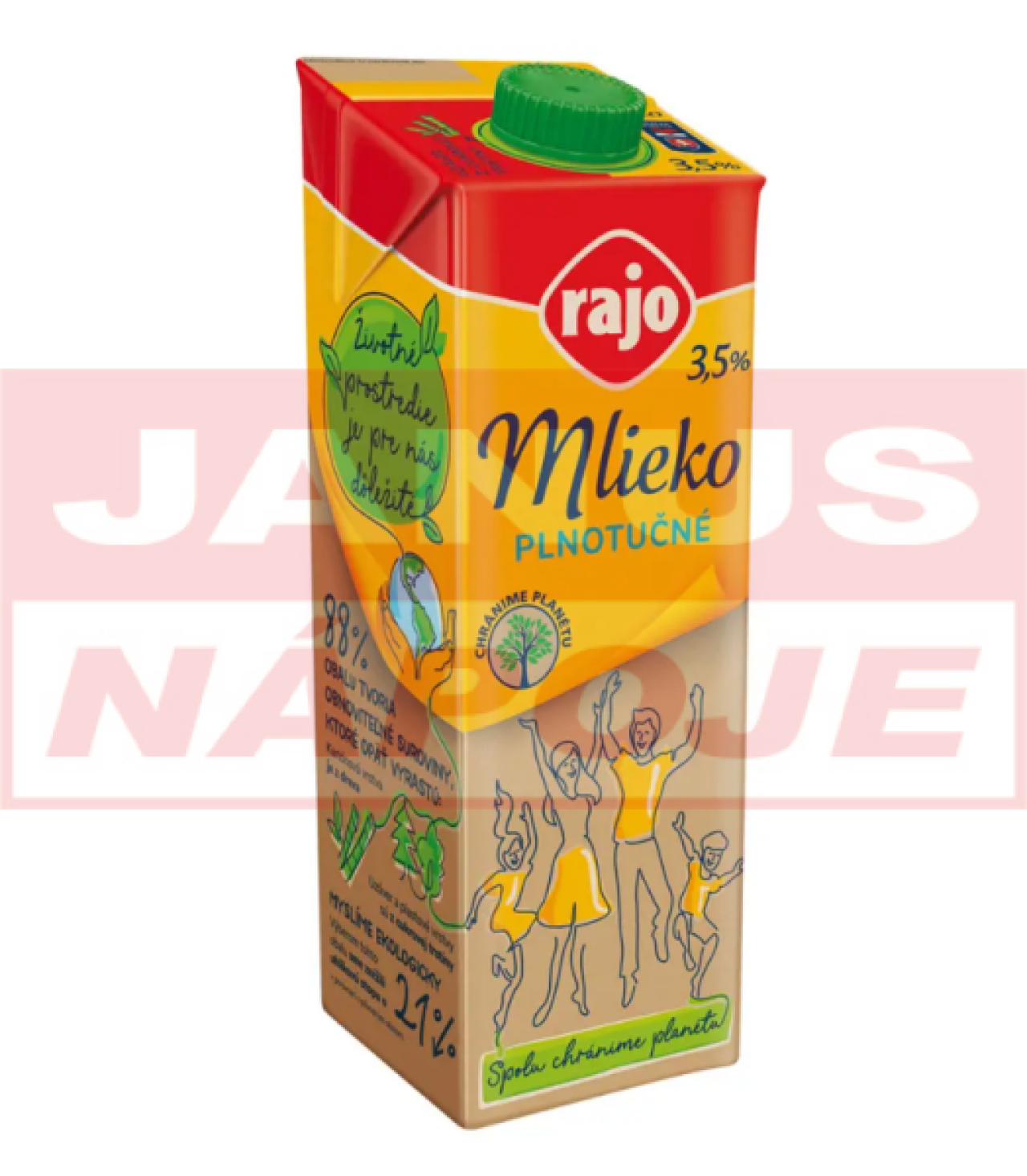 Trvanlivé plnotučné mlieko. Tuk najmenej 3,5%. Ošetrené UHT. Homogenizované